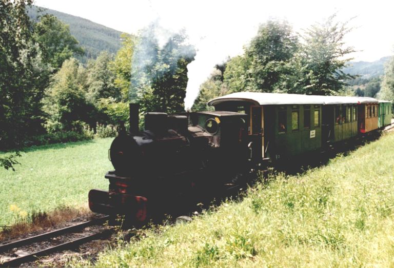 Waggons der GTB im Bf. Pöckstein, August 2001